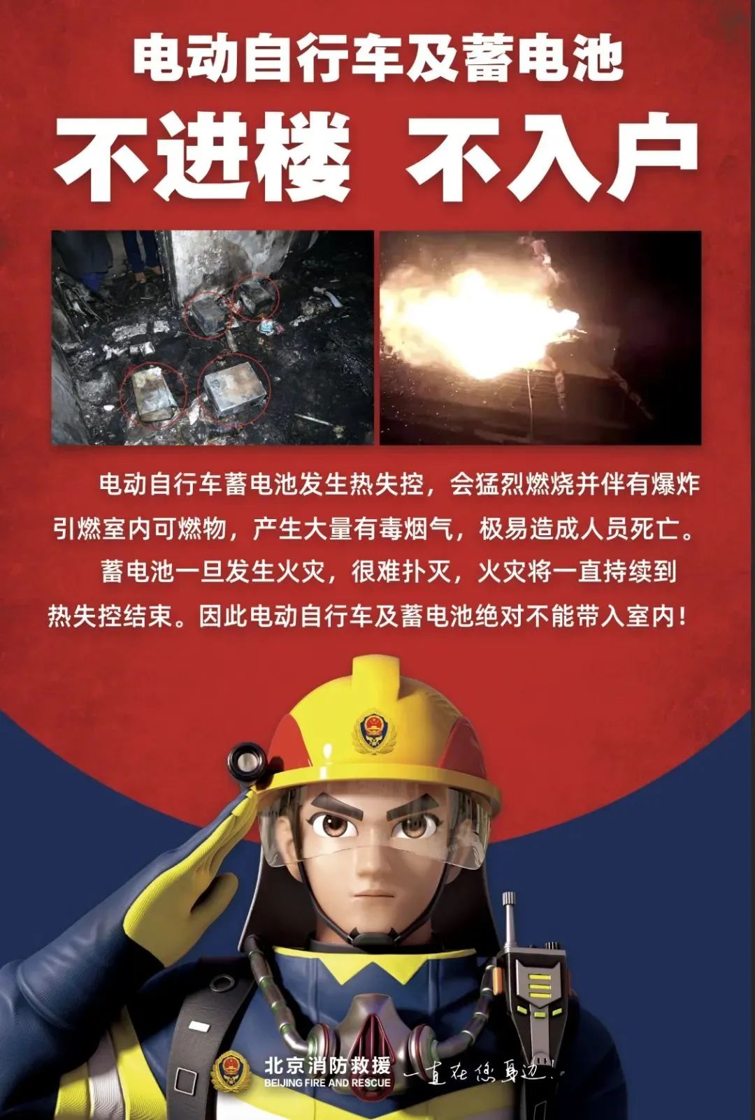 温馨提醒:广大市民务必将电动自行车停放在安全地点,充电时应当确保安全。严禁在建筑内的共用走道、楼梯间、安全出口处等公共区域停放电动车或者为电动车充电。严禁在个人住房内停放电动车或为电动车充电。同时,充电过程中应避免长时间过度充电,以免造成充电设施过热、短路等,进而引发火灾事故。