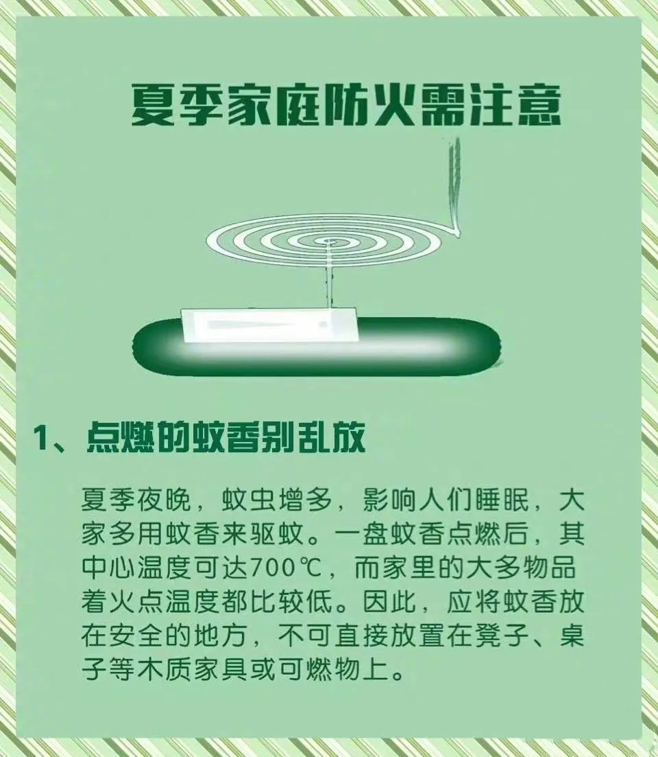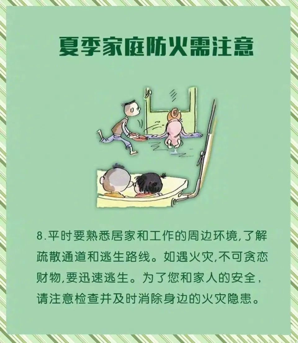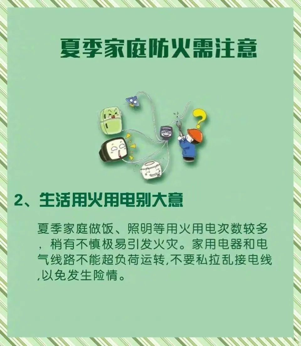 夏季气温升高,家庭用火、用气、用电量大幅提高,日常生活中潜藏的起火风险也在加大今天我们一起来学习夏季家庭防火注意事项