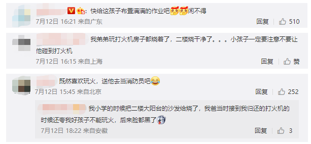 冲上微博热搜后,网友纷纷评论,表示自己或弟弟妹妹,也曾有过玩火烧家的经历。