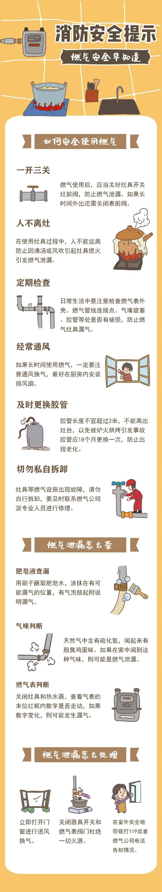 燃气的种类主要包括天然气、人工燃气、液化石油气和沼气、煤制气等,平时的使用中稍有不慎,极易发生火灾或爆炸,造成人员伤亡和财产损失。那么,应该如何安全使用燃气?燃气泄漏又该如何处理呢?戳下图一起了解